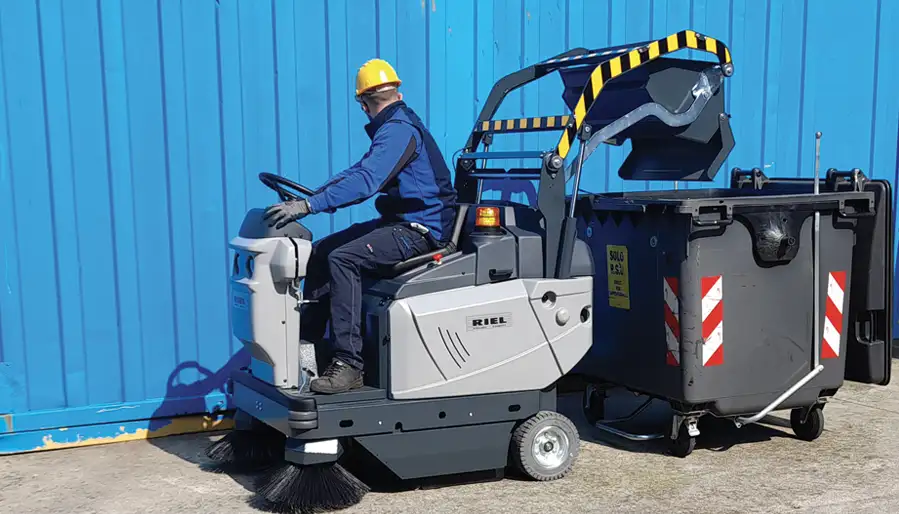 - Funzionamento: Utilizzano motori e pompe idrauliche per far ruotare le spazzole, azionare la trazione delle ruote e sollevare il cassone per lo scarico. Spesso sono macchine ad alte prestazioni con trazione idrostatica.